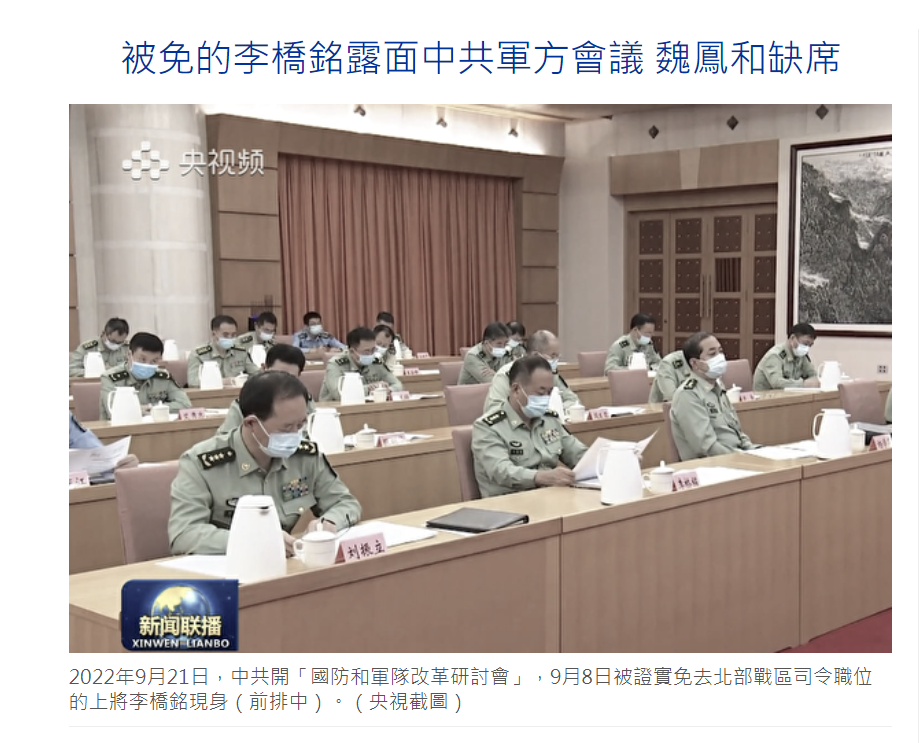我在互聯網仍然未能夠找到 9月21日的「國防和軍隊改革研討會」會議官方記錄 和出席人員名單。根據報導, 中央軍委委員李作成、苗華、張升民重要官員出席會議。為什麼整個視頻就看不見苗華和張升民出現?