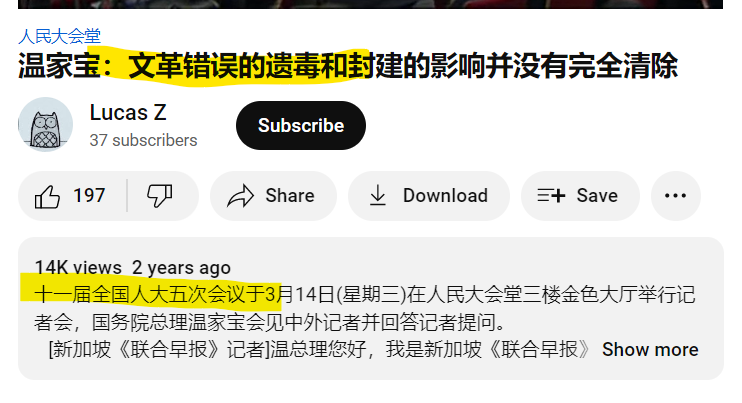 中國撒旦集團在兩星期前發佈一個溫家寶離別講話的視頻,內容感人,希望大家忘記他的貢獻。這個視頻很明顯是近期才用電腦CGI製作。因為他的內容和十年前的講話是自相矛盾的! 十年前他的視頻是: 問心無愧!