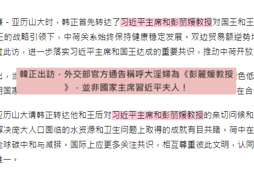 大部份國家領袖都清晰知道習近平已經和大淫婦彭麗媛分裂,祇有少數西方撒旦國家才支持大淫婦彭麗媛!