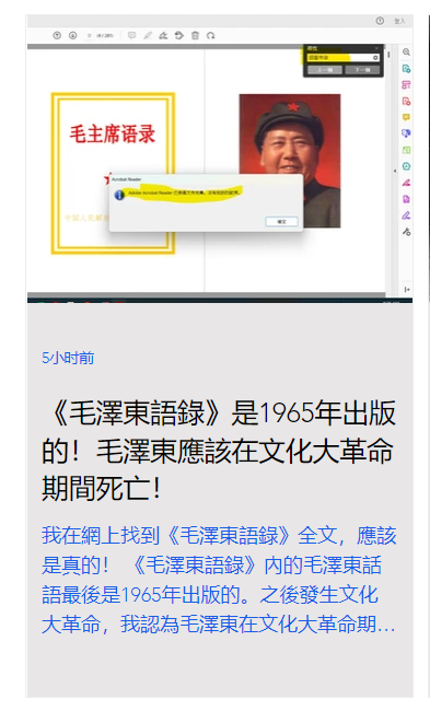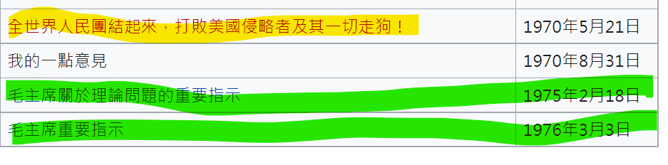 之前的發佈出錯。《毛澤東語錄》是1965年出版的,之後發生文化大革命。我認為毛澤東在文化大革命期間已經死亡或者被毒害。