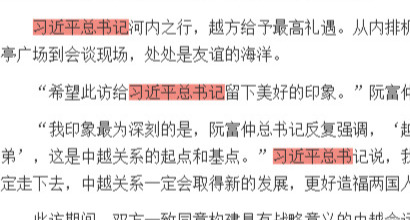文章內總結了習近平二十大成為國家主席之後的外交紀錄。文章內容大部分都是稱呼習近平為《習近平主席》。唯獨是出訪越南河內,文章稱呼習近平為《習近平總書記》。