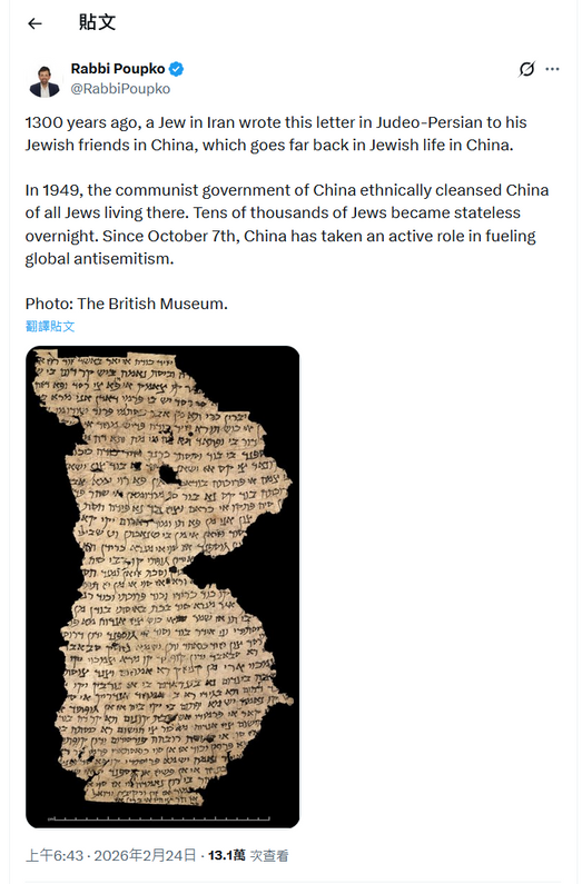 1300 years ago, a Jew in Iran wrote this letter in Judeo-Persian to his Jewish friends in China, which goes far back in Jewish life in China.