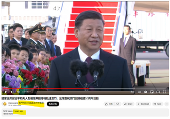 國家主席習近平和夫人彭麗媛乘搭專機抵達澳門,出席慶祝澳門回歸祖國20周年活動