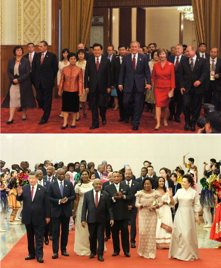 大淫婦彭麗媛是一個沒有學養,沒有教養,沒有修養的撒旦野種!穿著一件白色喪服出席中非宴會,是否暗示著帝國的沒落!