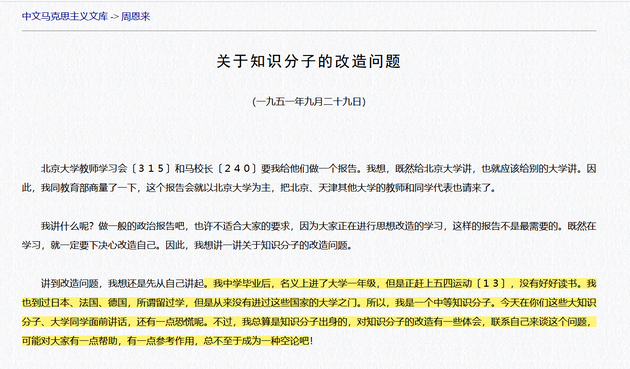 讲到改造问题,我想还是先从自己讲起。我中学毕业后,名义上进了大学一年级,但是正赶上五四运动〔13〕,没有好好读书。我也到过日本、法国、德国,所谓留过学,但是从来没有进过这些国家的大学之门。所以,我是一个中等知识分子。今天在你们这些大知识分子、大学同学面前讲话,还有一点恐慌呢。不过,我总算是知识分子出身的,对知识分子的改造有一些体会,联系自己来谈这个问题,可能对大家有一点帮助,有一点参考作用,总不至于成为一种空论吧!