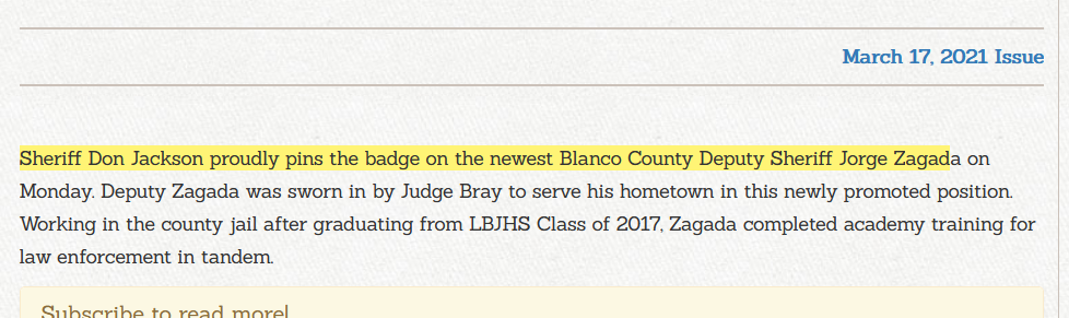 Austin American-Statesman published fake news again!! Robert Woodring is not the Chief Sheriff in Blanco County!