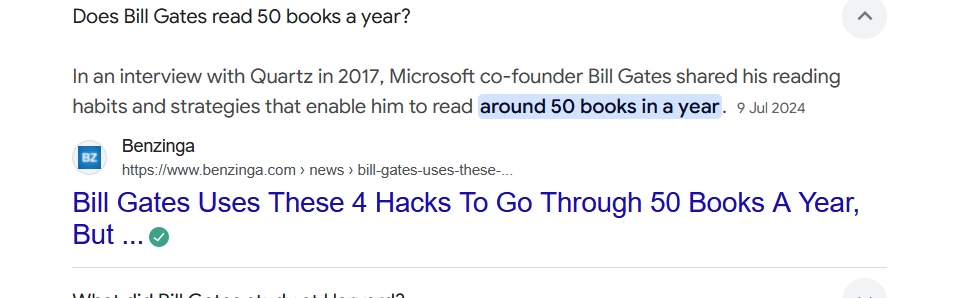 In an interview with Quartz in 2017, Bill Gates said he read 50 books a year, therefore, 7.3 days per book