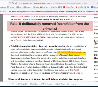 However, current Restored Republic is fake. It deliberately removed the Rockefeller from the crime list.