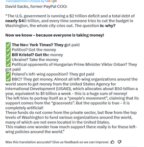 David Sacks, former PayPal COO: “The U.S. government is running a $2 trillion deficit and a total debt of nearly $40 trillion, and every time someone tries to cut the budget in Washington, the whole city cries out. The question is: why?