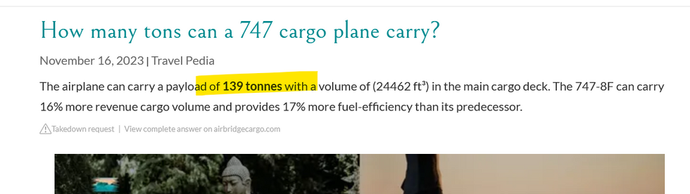 Today from the Dec 19 report, they first time mention that 650 plane loads of gold worth