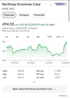 While the stock markets begin to crash worldwide, the US Military Industrial Complex is sitting nice and pretty.