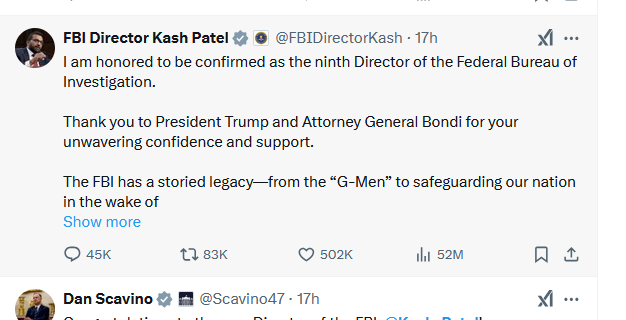 Kash Patel has been OFFICIALLY COMFIRMED by the Senate to serve as the FBI Director! 🔥🔥🔥