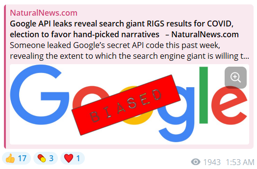 Google API leaks reveal search giant RIGS results for COVID, election to favor hand-picked narratives