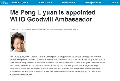 大淫婦彭麗媛負責世界衛生組織的事務! 她強化了全世界的醫療暴政!