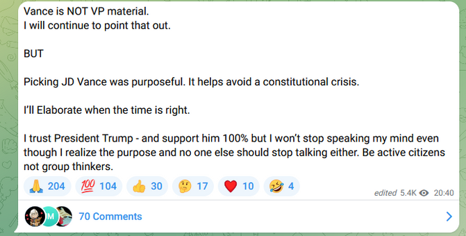 J. D Vance is purposely chosen by Trump as Vice-President for now. Just watch..