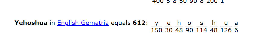 Jesus = Joshua = 444 = 12, Yehoshua = 612=9