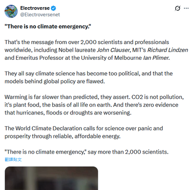 Message from over 2,000 scientists and professionals worldwide, including Nobel laureate John Claus : "There is no climate emergency."