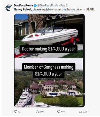Nancy Pelosi got paid $137 Million tax dollars by USAID! What a democracy model !!