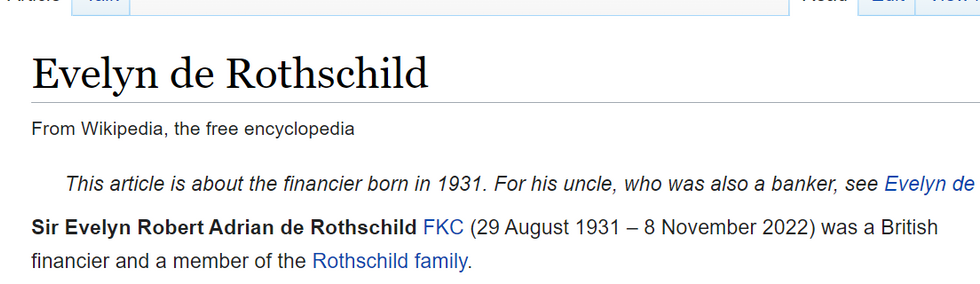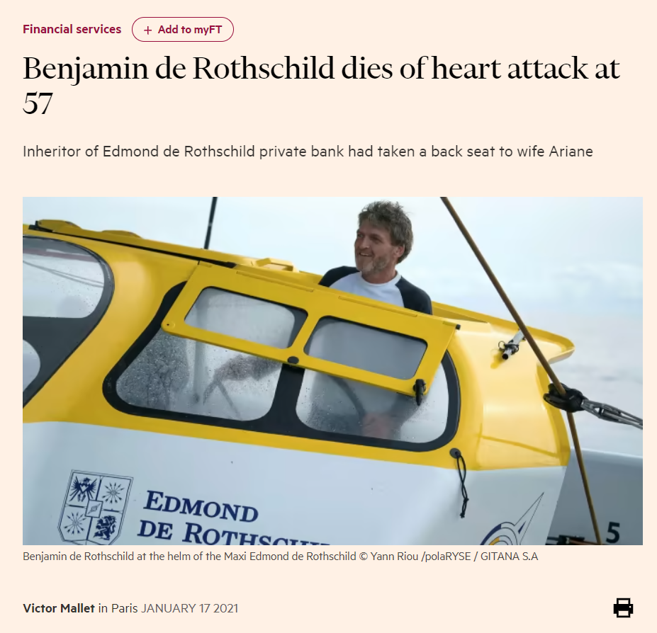 Benjamin de Rothschild (Head of the French Rothschilds) died last year and now Evelyn de Rothschild (Head of the British Rothschilds) died today.