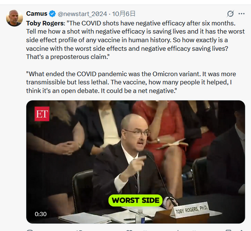 Toby Rogers: So how exactly is a vaccine with the worst side effects and negative efficacy saving lives? That's a preposterous claim."