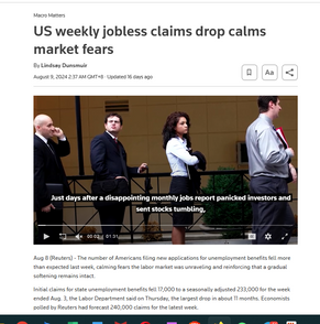 After the market crashed on Aug 3, US government immediately released a report to fool the world that the weekly jobless claims fall.