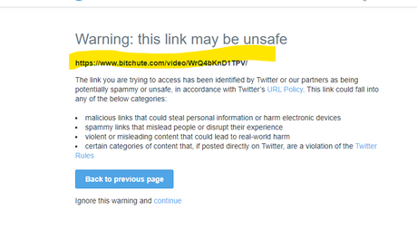 According to Twitter policy, it prohibits any 3rd-party social media links including Facebook (with me), and Truth Social (with Trump), but it allows for the fake media YouTube! It also displays a warning message on the Bitchute video.