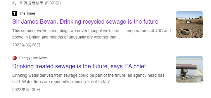 The head of the U.K. Environmental Protection Agency, in line with the plans and goals of the WEF stated that "drinking recycled wastewater is the future.