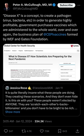 "Disease X" is a concept, to create a pathogen (virus, bacteria, etc) in order to generate highly profitable, government purchases vaccines which are administered to the whole world, over and over again, the business plan of @CEPIvaccines formed by WEF and Gates Foundation.