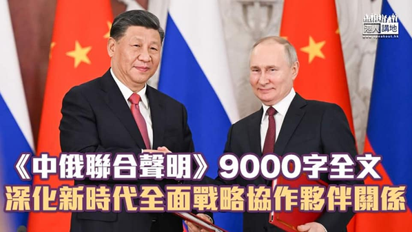 【習近平訪俄】《中俄聯合聲明》9000字全文 深化新時代全面戰略協作夥伴關係