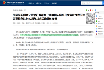 新华社北京6月24日电(记者董博婷、孙少龙)今年是中国人民抗日战争暨世界反法西斯战争胜利80周年,我国将隆重举行纪念活动。中共中央总书记、国家主席、中央军委主席习近平将出席系列活动发表重要讲话并检阅部队。国务院新闻办公室24日举行新闻发布会,介绍纪念活动总体安排。
