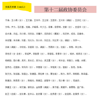 中國政權一直是下九流戲子妓女治國。第十四屆政協委員會中文化藝術界人數大幅減少!