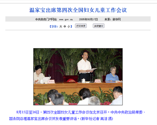 温家宝出席第五次全国妇女儿童工作会议并讲话 (2011)