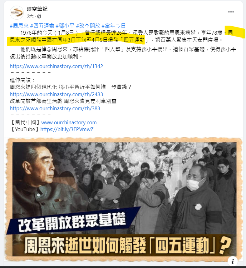 什麽是假歷史?周恩來之死觸發「四五運動」?撒旦周恩來為了維護自己的面子,這種極度低能的謊話也可以做得出!