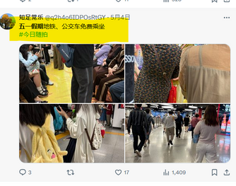 街上人頭湧湧,因為五一假期地鐵公交車免費,高速公路免費。但是那些遊客就不會搭飛機,機場完全沒有人流。