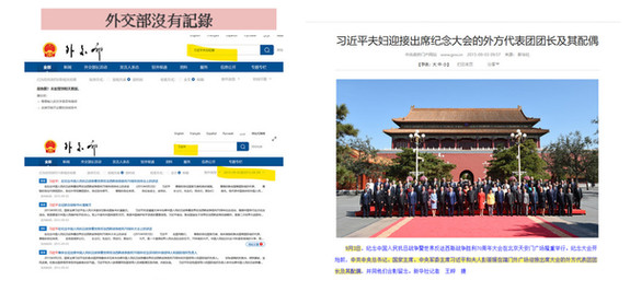 大淫婦彭麗媛和《席近平》假冒習近平身份舉辦國際會議和虛假國際歡迎儀式其中包括《中國抗日戰爭七十週典禮》,並且在互聯網和西方媒體廣泛報導,突顯大淫婦彭麗媛的地位。