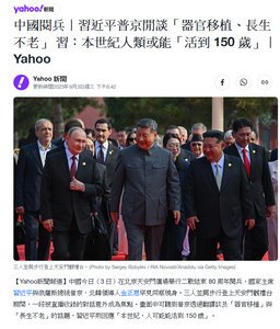 【Yahoo新聞報道】中國今日(3 日)在北京天安門廣場舉行二戰結束 80 周年閱兵,國家主席習近平與俄羅斯總統普京、北韓領導人金正恩罕見同框現身。三人並肩步行登上天安門觀禮台期間,一段被直播收錄的對話意外成為焦點。畫面中可聽到普京透過翻譯談及「器官移植」與「長生不老」的話題,習近平則回應「本世紀,人可能能活到 150 歲」。