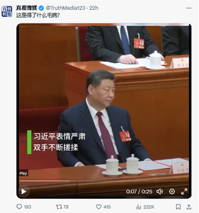 撒旦畜生《席近平》主席演技精湛,刻意假扮自己身體有毛病導致雙手不斷搖晃,來欺騙大家他真的出現在兩會現場,衹是因為身患疾病而下台!