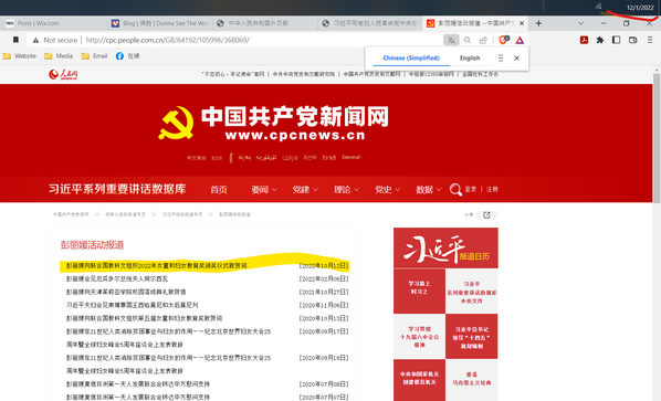 《彭丽媛活动报道》之中最近祇有一次活動紀錄是在2022年10月12日,《彭丽媛向联合国教科文组织2022年女童和妇女教育奖颁奖仪式致贺词》,文章內容完全沒有稱呼彭麗媛為“國家主席夫人,她是以個人名義身份參與的。