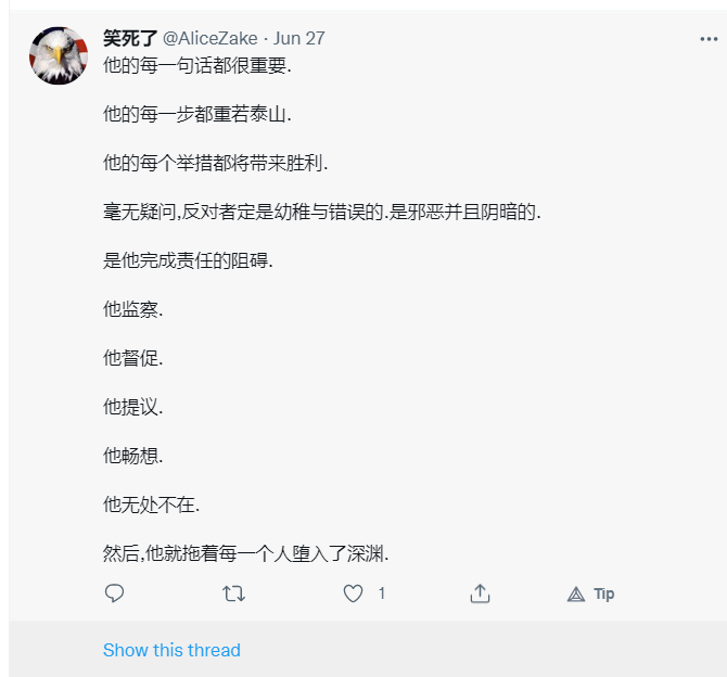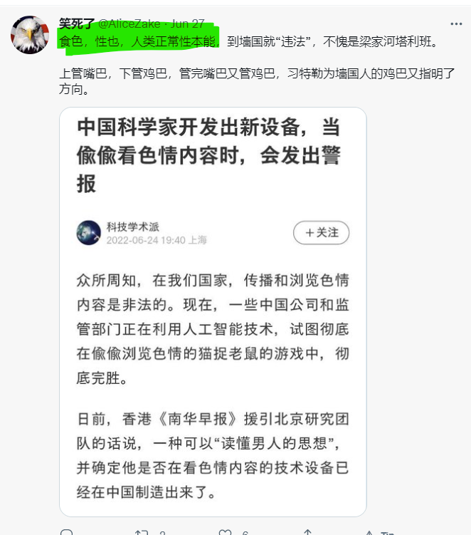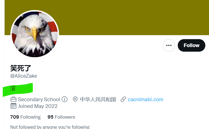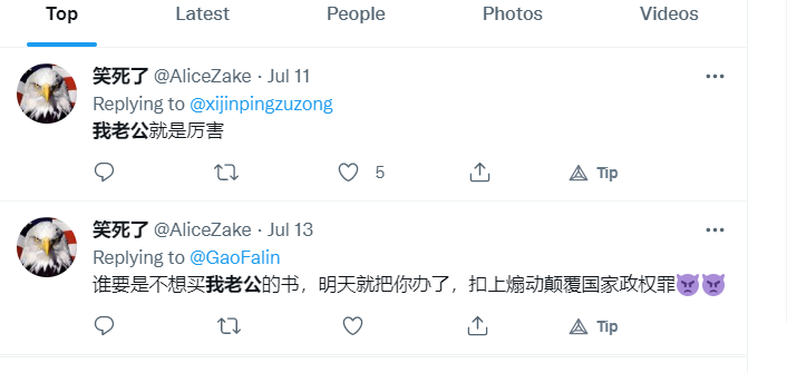 大淫婦彭麗媛勾結撒旦集團,她們絕對有能力控制Twitter 上的言論。假若這個賬戶是假冒用來污衊她的,那又何須改名改圖片?她是否認為沒人會留意Twitter上的言論, 所以就肆無忌憚地發帖文?