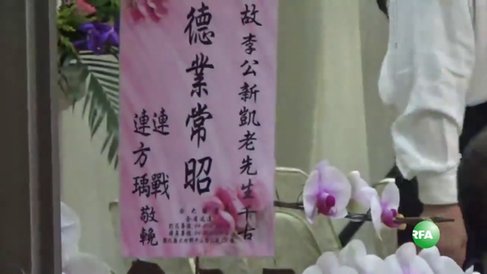 李新凱的喪禮是在2016年11月23日舉行,那時候的蔡英文已經是所謂“臺灣總統”,但是她低調以民進黨主席身份是送花圈。蔡英文就是也是撒旦集團的走狗,她上臺之後操控臺灣的傳媒和輿論,不斷推行台獨,散播大量抹黑共產黨和習近平的新聞和視頻。