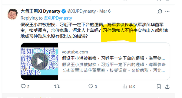 他們的言論,中共高層鬥爭就是《中共中央總書記》《席近平》主席,和胡錦濤帶領下的中共元老的鬥爭。