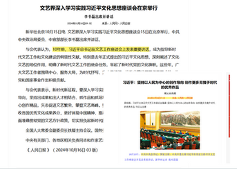 2024年10月15日,文藝界深入學習實踐習近平文化思想座談會在北京舉行,中共中央政治局委員、中宣部部長李書磊出席並講話。
