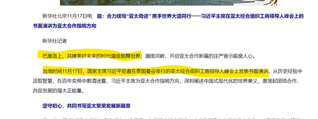 小心留意文章內容的用詞。文章內並沒有承認習近平獲邀請或出席峇里島G20峰會。另外有提及" 国家主席习近平应邀在泰国曼谷举行的亚太经合组织工商领导人峰会上发表书面演讲" , 但是沒有承認習近平出席泰國APEC峰會及現場發表演講。新華網刊登習近平APEC的11.17演講衹是《書面演講》!
