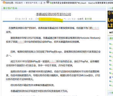 李嘉誠和周凱旋早在2013年就公開自己投資有關比特幣(Bitcoin) 的項目。他們與Blockstream公司合作。Blockstrem 公司創始人 Adam Back 就是發明比特幣核心技術的重要人物。