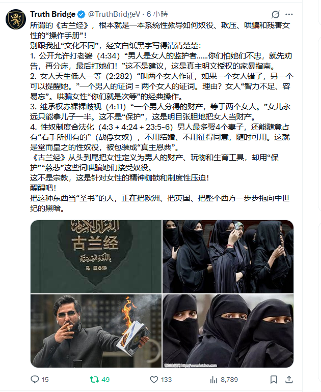 所谓的《古兰经》,根本就是一本系统性教导如何奴役、欺压、哄骗和残害女性的“操作手册”!