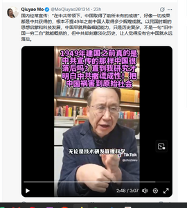 国内经常宣传:“在中共带领下,中国取得了前所未有的成绩”,好像一切成果都是中共获得的,根本不提49年之前中国人取得多少辉煌成就。以民国时期的思想启蒙和科技发展,中国早就具备崛起能力,只是历史复杂,不是一句“旧中国一穷二白”就能概括的,但中共却刻意淡化历史,让人觉得没有它中国就永远落后