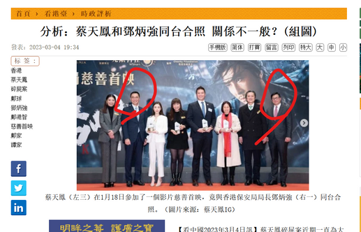 蔡天鳳案當然是中國撒旦畜生製造的一宗死亡恐嚇。天上鳳凰死無全屍,骨頭用來煲青紅蘿蔔湯。而且蔡天鳳的前夫認識鄧炳強蕭澤賢。鄧炳強,蕭澤賢,楊潤雄曾經一同出席慈善首映禮。